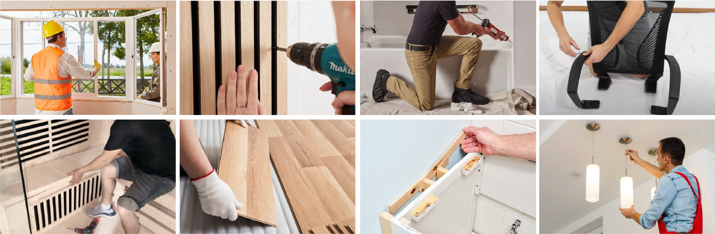 Tiles| floors| bathrooms| doors and windows| cabinets| more…..